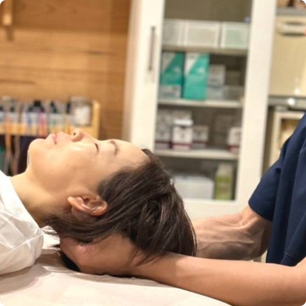 デスクワークなど長時間同じ姿勢を維持するための筋肉は骨の付着部、関節周囲の深層部にあるインナーマッスル。その深層部の筋肉まで手技で刺激を届かせ関節を緩めていく療法です。